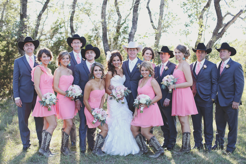 You could call the style of the wedding vintage Western glam or Texas rustic chic. No matter how you slice it, though, one thing is certain: The Hill Country wedding of Australian singer Shea Fisher to professional rodeo star Tyson Durfey wasn’t short on fashion — or fun.