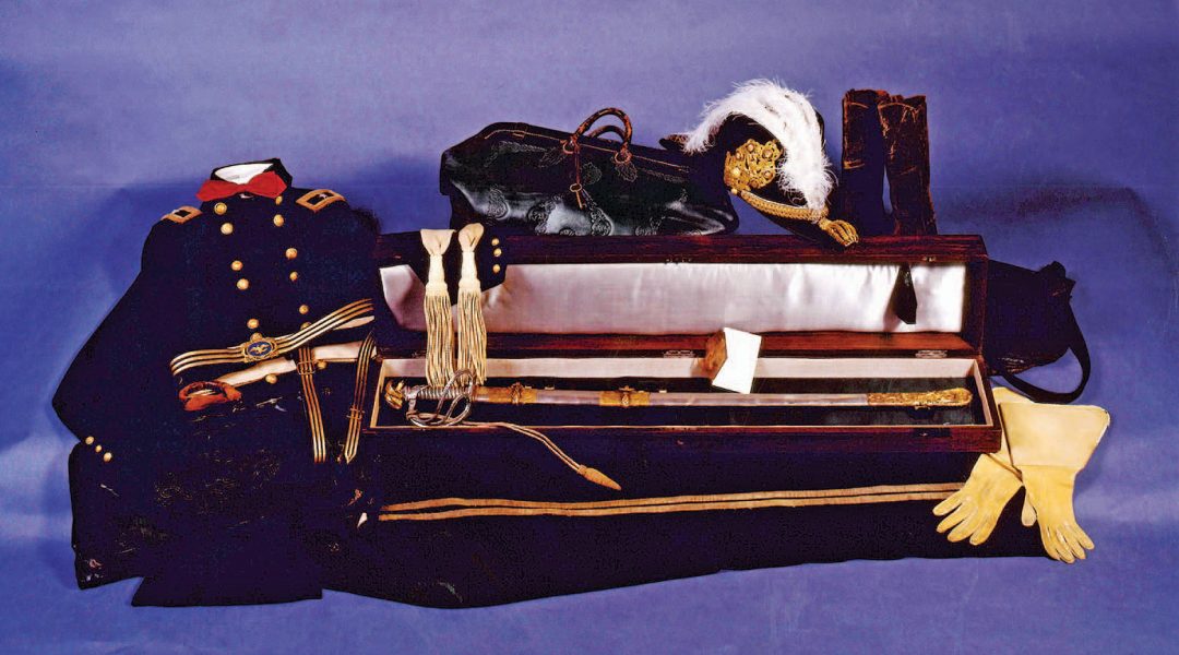 For Ingall, who was the assistant director at the museum in Monroe when the collection was exhibited, the most evocative item among Custer’s possessions might be his Tiffany & Co. presentation cavalry saber: “The sword is exquisite; it was given to him by his staff officers in the Michigan Cavalry Brigade. It’s just incredible — very beautiful.” The other thing Ingall especially loves is Custer’s brigadier general’s dress frock coat. After poring over letters, books, and photographs of Custer wearing the coat before and after his wedding day (no known photo of Custer exists on that particular occasion), Ingall believes it is the coat Custer was probably married in. Pointing out the precise way the buttons are spaced on a brigadier general’s dress frock, Ingall admits that Custer is something of an obsession. Years later, he’s still moved by the memory of seeing the Boy General’s artifacts in person.