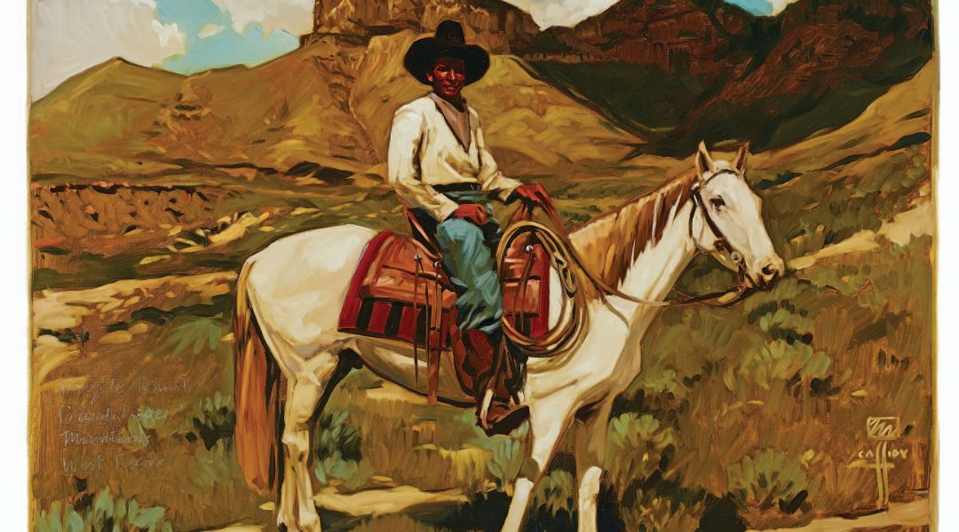 Currently among the most collectible in the Western genre, Cassidy this day is putting his energies into exploring concepts for new paintings by going through pictures he took last year on the Crow Indian Reservation. “We shot a couple thousand pictures. I do trips like that a couple of times a year, usually in spring and fall. Wyoming and Montana are beautiful, but, boy, it’s a long, cold winter and boiling hot in the summer. I like to go when there’s still a little snow on the peaks and everything is green. We’ll take two-week road trips and other shorter trips, like maybe fly into Albuquerque [New Mexico] and rent a car and drive from Santa Fe into Colorado.”