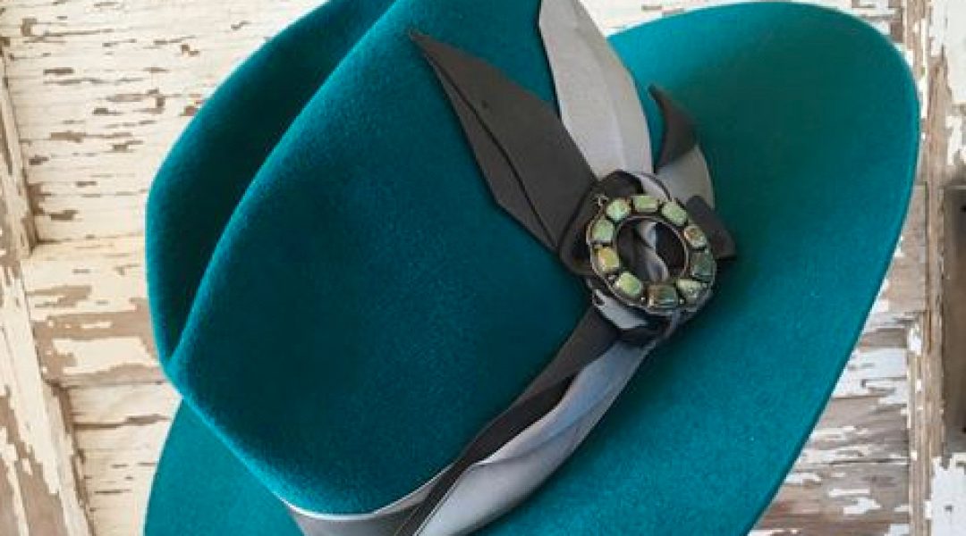 LEFT TO RIGHT FROM TOP: Kingman turquoise and stamped silver earrings from Melissa Benge Collection. Double D Ranch Carraccas large concho belt with small faux-turquoise stones on bison leather, B.B. Simon hair-on-hide and turquoise crystal skinny belt, J. Alexander Rustic Silver hand-stamped German silver concho belt inset with genuine turquoise, Leatherock 2-inch-wide Old Silver concho belt from Pinto Ranch. Old Gringo Tatum boot with turquoise embroidery and brass studs from Gunslinger of Bandera. Douglas Magnus Primavera hammered-silver trophy buckle lined with genuine turquoise cabochons from Maida's Belts and Buckles. Laredo collection little tooled-leather clutch, pouch cross-body purse from Double J Saddlery. For the Love of Turquoise handcrafted felt hat from Vaquera. Faux-suede ankle bootie with 1-inch heel and fringe from The Rollin' J. JC Trading three-stone cuff signed by silversmith D. Becenti (Navajo), Native artisan cuff with seven Pilot Mountain turquoise stones, Native artisan three-stone Kingman turquoise cuff from Maverick Fine Western Wear.
