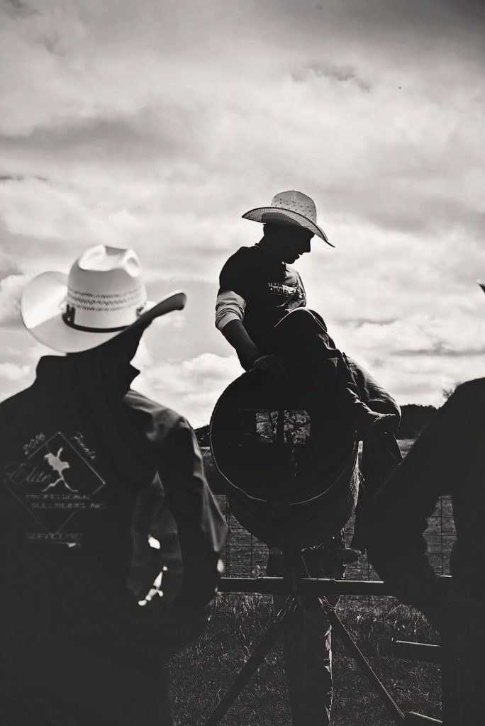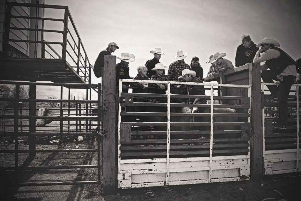 Bull ropes are pulled out and stretched from the fence in all directions. The smell of rosin seeps out of gear bags. Steers and bulls are carefully selected based on each rider’s skill level. This is without a doubt a dangerous sport a dangerous sport — touted as The Toughest Sport on Earth — but a controlled atmosphere such as this provides a much safer ride, with the possibility of some success. This is a far cry from the “draw,” in which riders are randomly paired with a bull off an events list at the PBR.