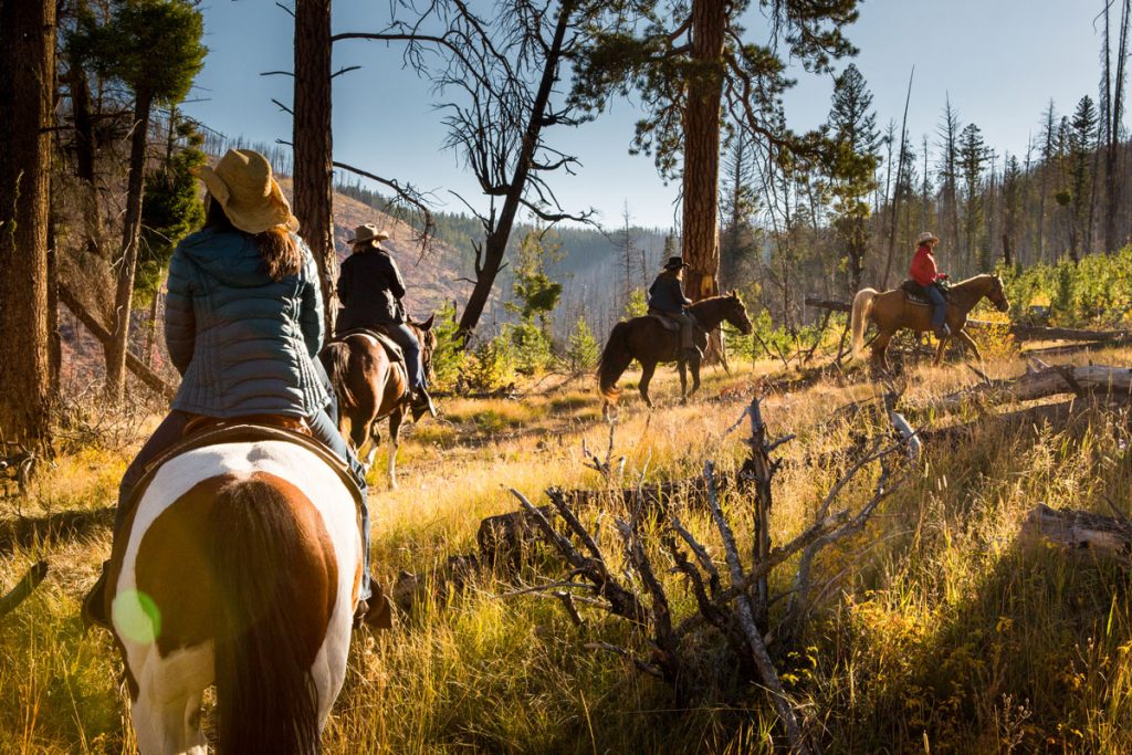 Winter-specific adventures include ice fishing, skijoring, dog sledding, and snowshoeing. Lift tickets to nearby Lost Trail Powder Mountain Resort (along with rentals) are included in Triple Creek Ranch winter rates.