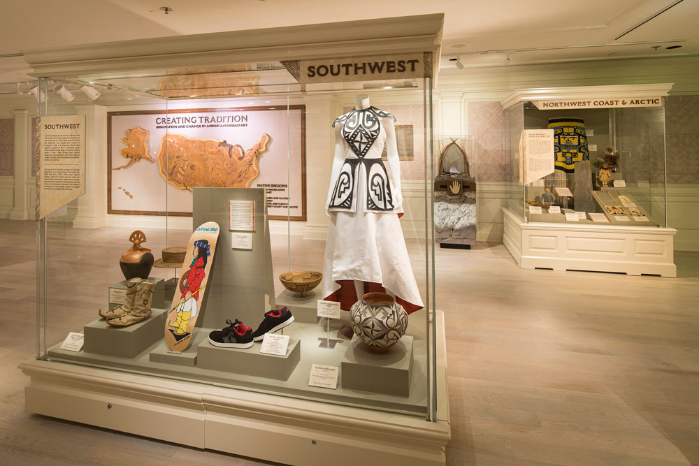 Highlighting the role traditional craftsmanship plays in Native life, the exhibition Creating Tradition: Innovation and Change in American Indian Art features everything from intricate basketry to painted skateboards, celebrating the diversity of tribal expression throughout the ages and emphasizing how old shapes new.