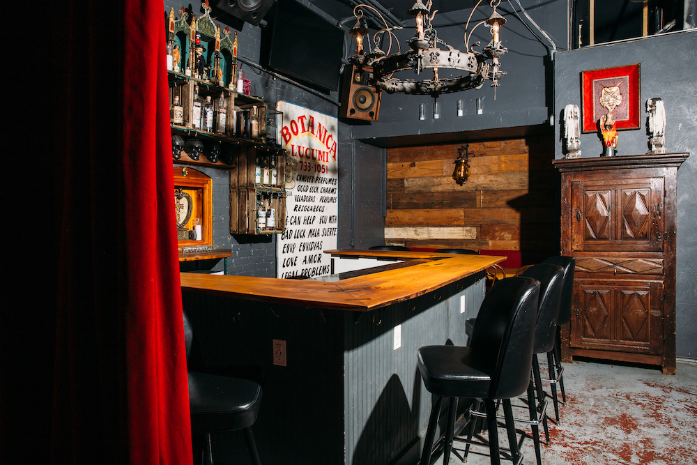 “We reused some of the items from the original Las Almas room, including tabletops and stuff like that, but most of that stuff’s in our back bar, which is kind of a re-creation of that original space,” Kvetko says. “And then I kind of used my skills as an antiques dealer to source everything super cheap.” The back bar, a small room near the kitchen, is overlooked by a statue of St. Jude, patron saint of lost causes, a piece Kvetko has had in his personal collection for more than 20 years.