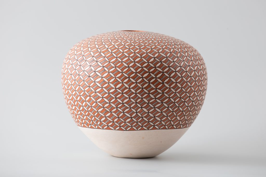 The list began with three legendary pottery matriarchs and their descendants: Nampeyo (Hopi-Tewa), Maria Martinez (San Ildefonso), and Margaret Tafoya (Santa Clara). It expanded to include Helen Shupla (Santa Clara), Frog Woman 1 (Paqua Naha, Hopi-Tewa), and Frog Woman 2 (Joy Navasie, Hopi-Tewa). The museum also acquired pieces by contemporary potters like Tammy Garcia (Santa Clara), Nancy Youngblood (Santa Clara), Nathan Youngblood (Santa Clara), Rondina Huma (Hopi-Tewa), Al Qöyawayma (Hopi-Tewa), and Diego Romero (Cochiti).
