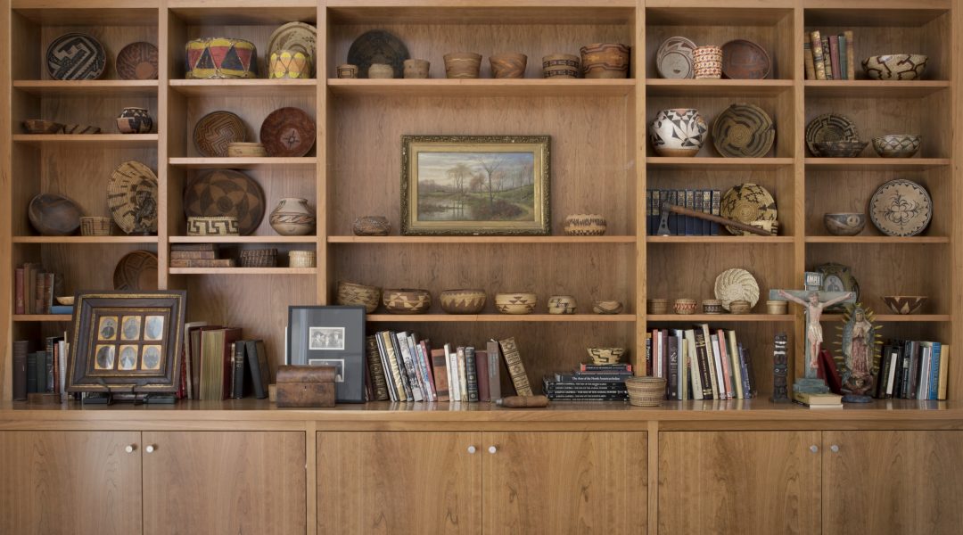 “All of the casework is American cherry, chosen for its rich color and distinctive grain. It's used throughout this house as a unifying design element and acts as the perfect backdrop to the homeowner's collection of Native American artifacts, highlighting their color and texture. It is also a modern interpretation of Craftsman art and architecture, echoing details of the original house and complementing the homeowner's collection of authentic Craftsman furniture.” — Andrew Mann, architect, Andrew Mann Architecture