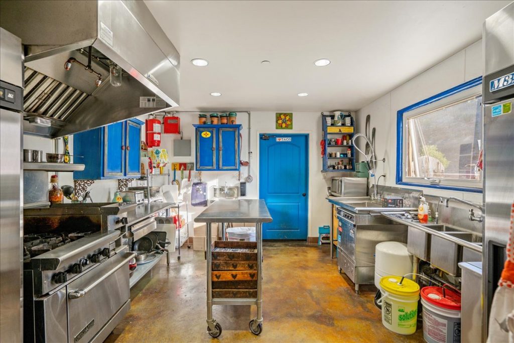 The vineyard produces seven varietals including Zinfandel, Petite Syrah, and Cabernet Sauvignon, and the winery and distillery produces nearly 3,000 cases each year. Part of the property also includes a Southwestern-themed cantina and tasting room complete with a bar, table seating, and a commercial kitchen.