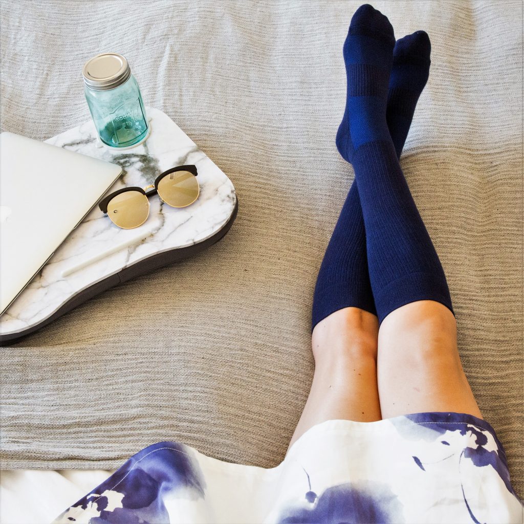 Compression socks can help, and they need not look like you raided your grandpa’s laundry basket or dressed yourself in a Walgreen’s Pharmacy aisle.