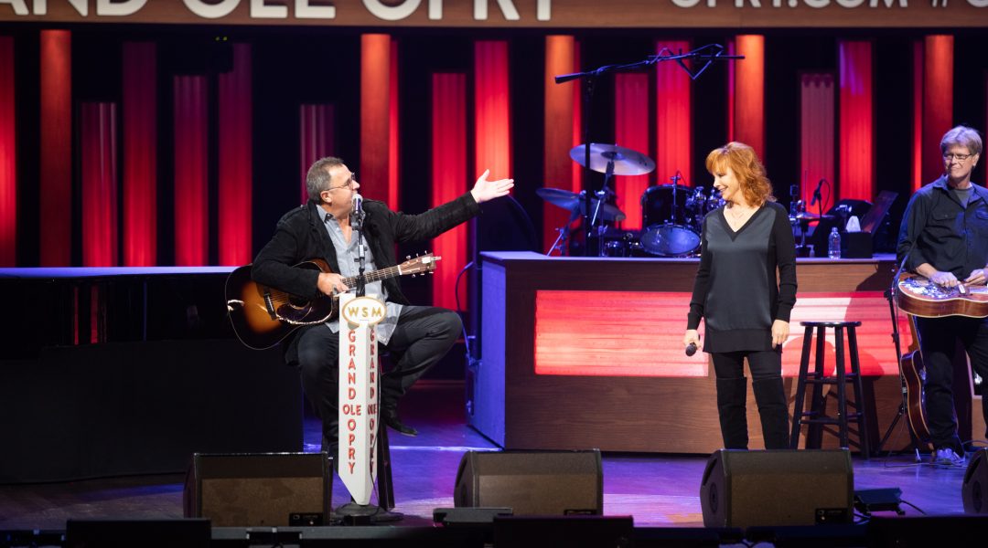 Photography: Vince Gill, who performs Saturday at the Grand Ole Opry, onstage with Reba McEntire. Photo by Chris Hollo.