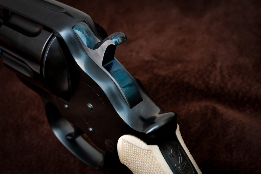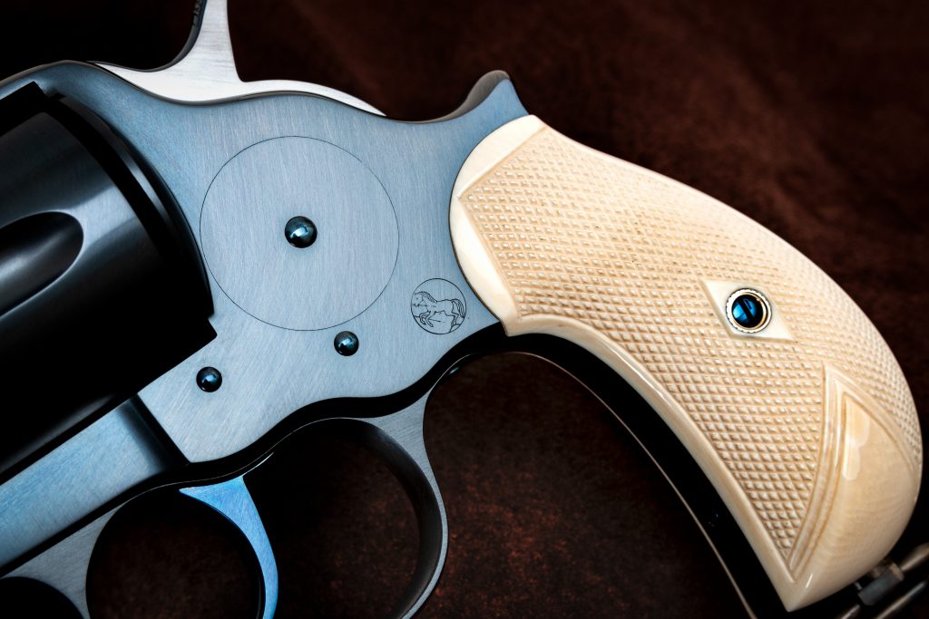Selleck displays the Colt in a case with a brass plaque that reads “I said I never had much use for one. Never said I didn’t know how to use it.”