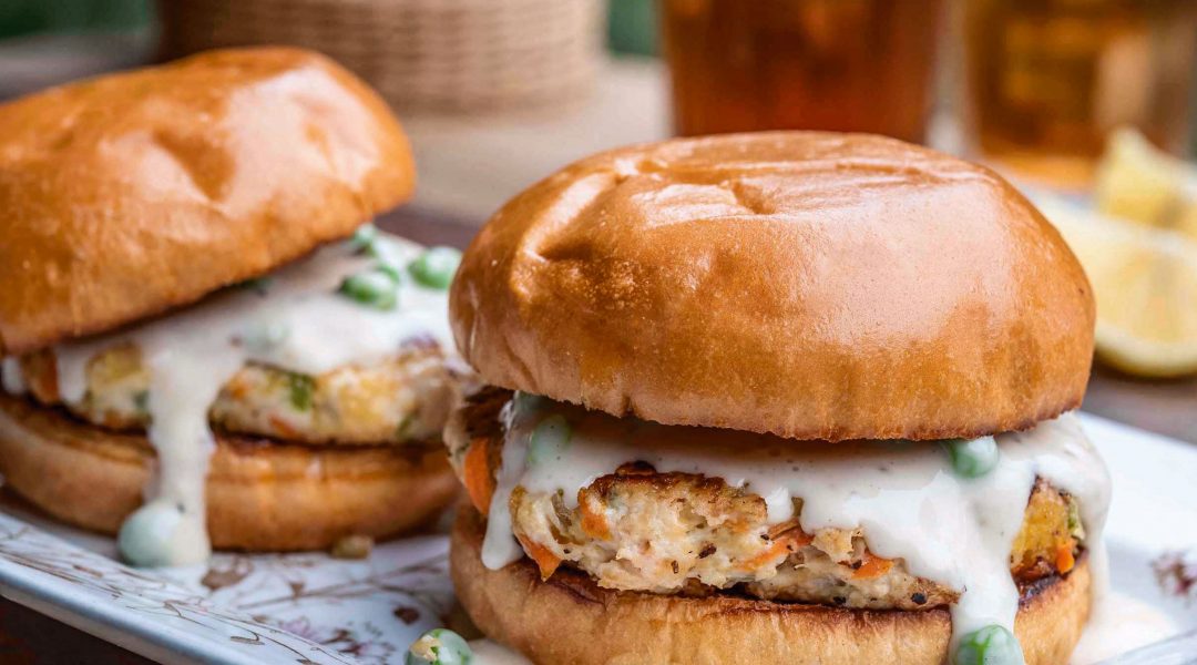 This burger just might become one of your family favorites. It combines all the savory vegetable flavors of my mama’s classic chicken potpie and puts it on a bun. The sweet English pea gravy takes this dish home. It’s truly incredible to bite into this burger and taste all the flavors of a perfect potpie. It’s a comfort burger!