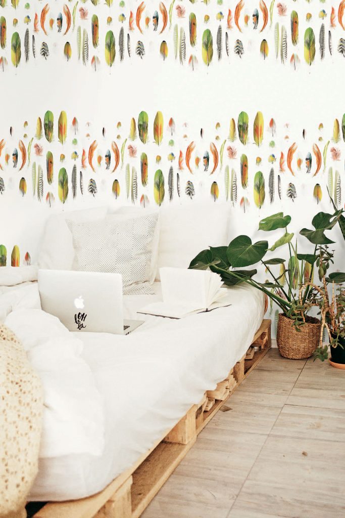 From textiles and wallcoverings to glass mosaics, feathers are taking flight in interior design.