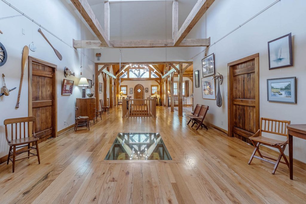 The home features three bedrooms and three-and-a-half baths, with space and plumbing in place to build a fourth, as well as a spacious, open-concept kitchen with a commercial-grade sink and oven. One of the most interesting features of the home is a clear, in-laid flooring panel providing natural sunlight to the first floor and a clear view of the cupola above.