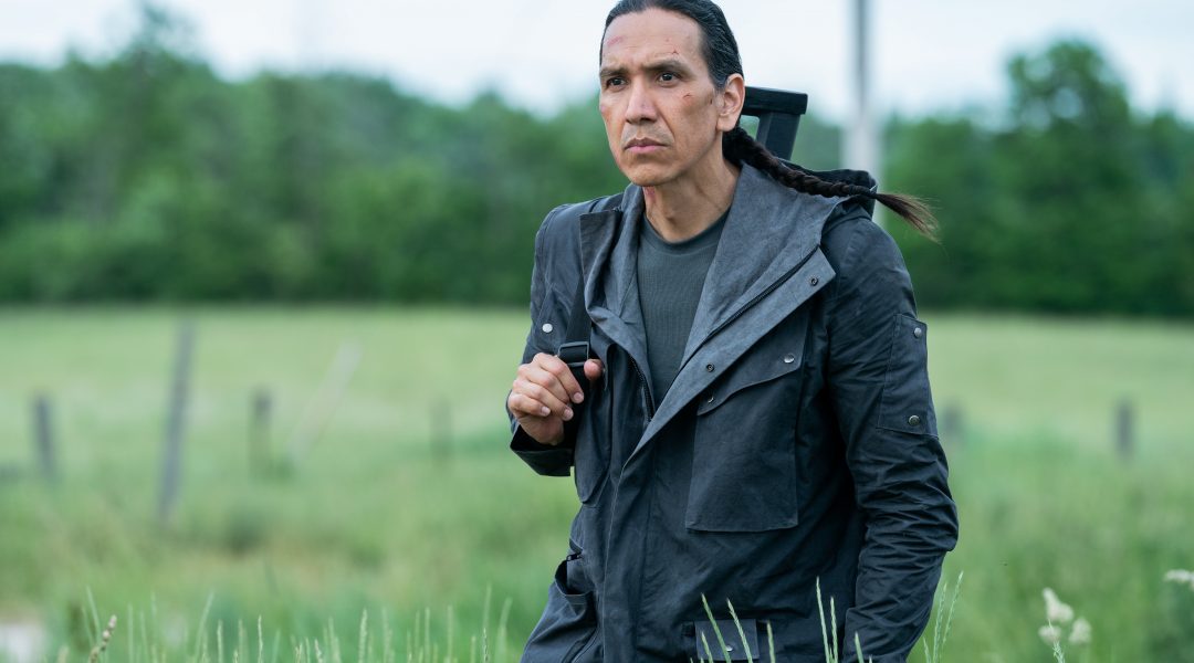 Michael Greyeyes looms large as a relentless special op on the trail of a young girl with pyrotechnical abilities in Firestarter, a new thriller based on Stephen King’s 1980 novel set for release May 13 in theaters and on Peacock.