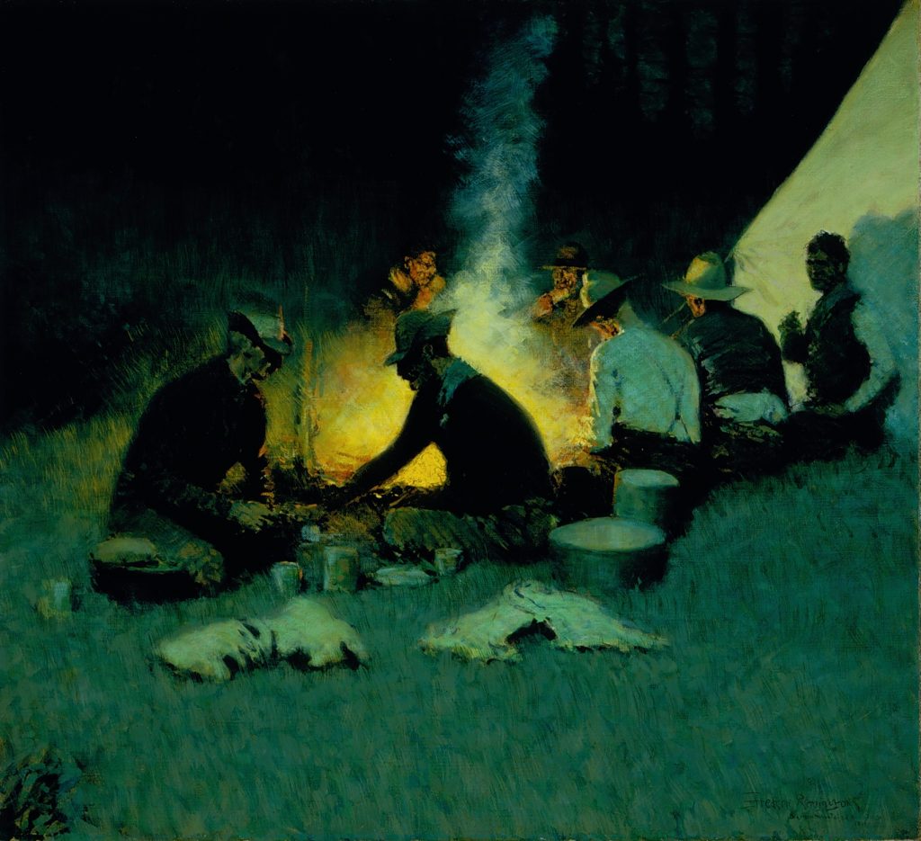 Frederic Remington, Hunters’ Supper, 1909, oil on canvas, 27” x 30”. Image courtesy of National Cowboy & Western Heritage Museum