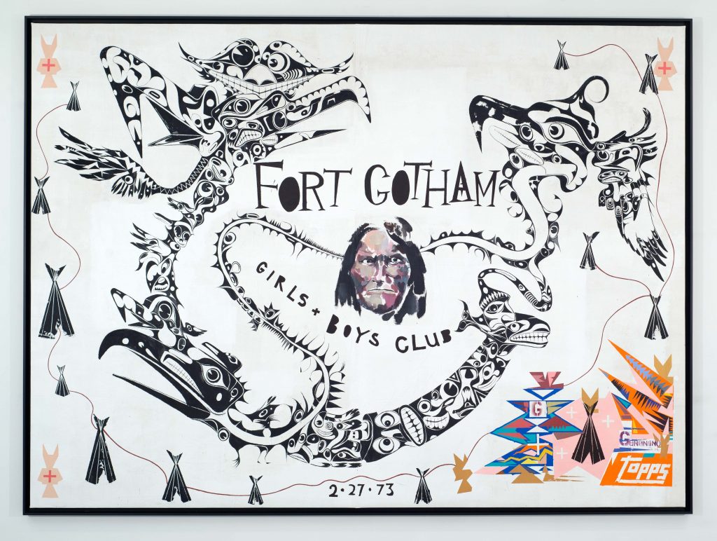 Brad Kahlhamer; Fort Gotham Girls and Boys Club; 2014; acrylic, ink, spray paint, pencil on bed sheet. Collection of the Tucson Museum of Art, Museum Purchase. Funds provided by the Contemporary Art Society and the Virginia Johnson Fund. 2020.58. Photo credit: Courtesy of the artist and Garth Greenan Gallery, New York