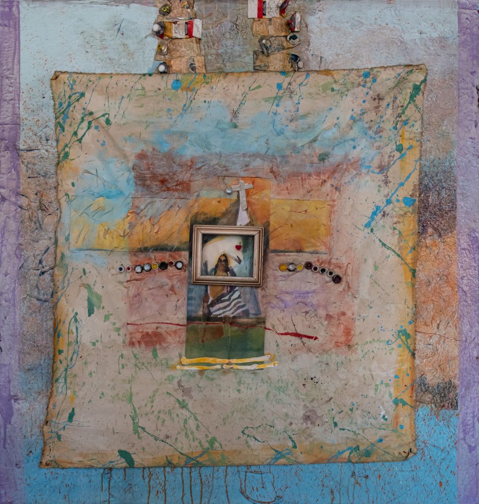 Inducted as a Master Artist in 1997 by the Five Civilized Tribes Museum, Jimmie Carole’s work is included in the museum’s permanent collection, and her painting New Barber can be seen in Tulsa’s Philbrook Museum. Not slowing down, she was awarded Second Place in March 2021 by Heard Museum for her textile piece Sacred Fire. Among her works in the Matrilineal exhibition is her Muscogee beaded pouch made with wool, cotton, rayon ribbon, and glass beads employing the shapes and designs of her ancestry.