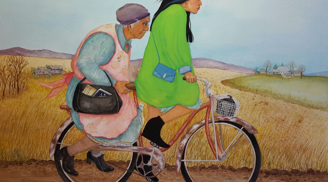 Jimmie C. Fife (Mvskoke), I See the Future, 2010, watercolor on paper, 16 x 14.25 in. Image courtesy of the artist.