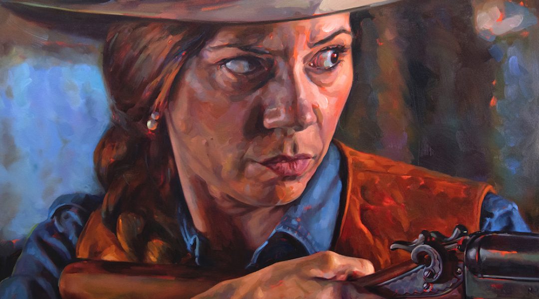 Felice House’s paintings put women front and center, answering the provocative question posed on the artist’s website: “What if John Wayne were a woman?”