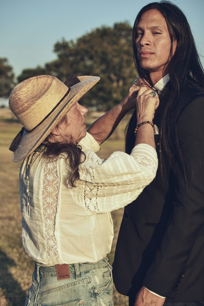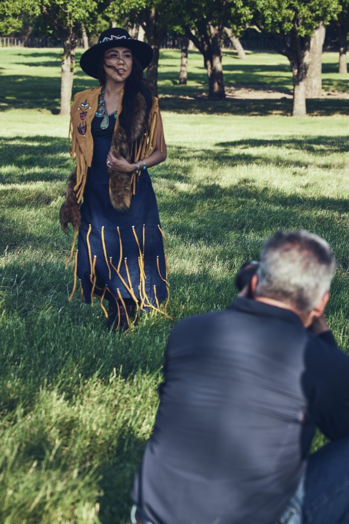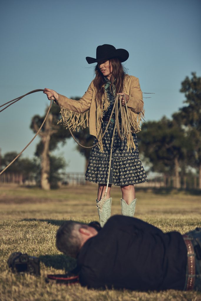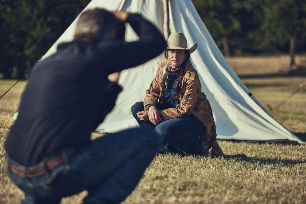 With a vision as vast and colorful as this one, we knew we would need a group of models who knew how to embody the Western spirit in its entirety. That’s why we made the choice to use Western and Native influencers this time around. Native actor Jeremy Gauna, Western artist and barrel racer Chloé Burk, artist and cowgirl Zuzanna Isham and vintage collector husband Chad Isham, Native clothing designer Stephanie Crowchild, cowboy and TV personality Brian Doty, and rancher Darcy Douglas hopped on board to create a team full of unique skills.