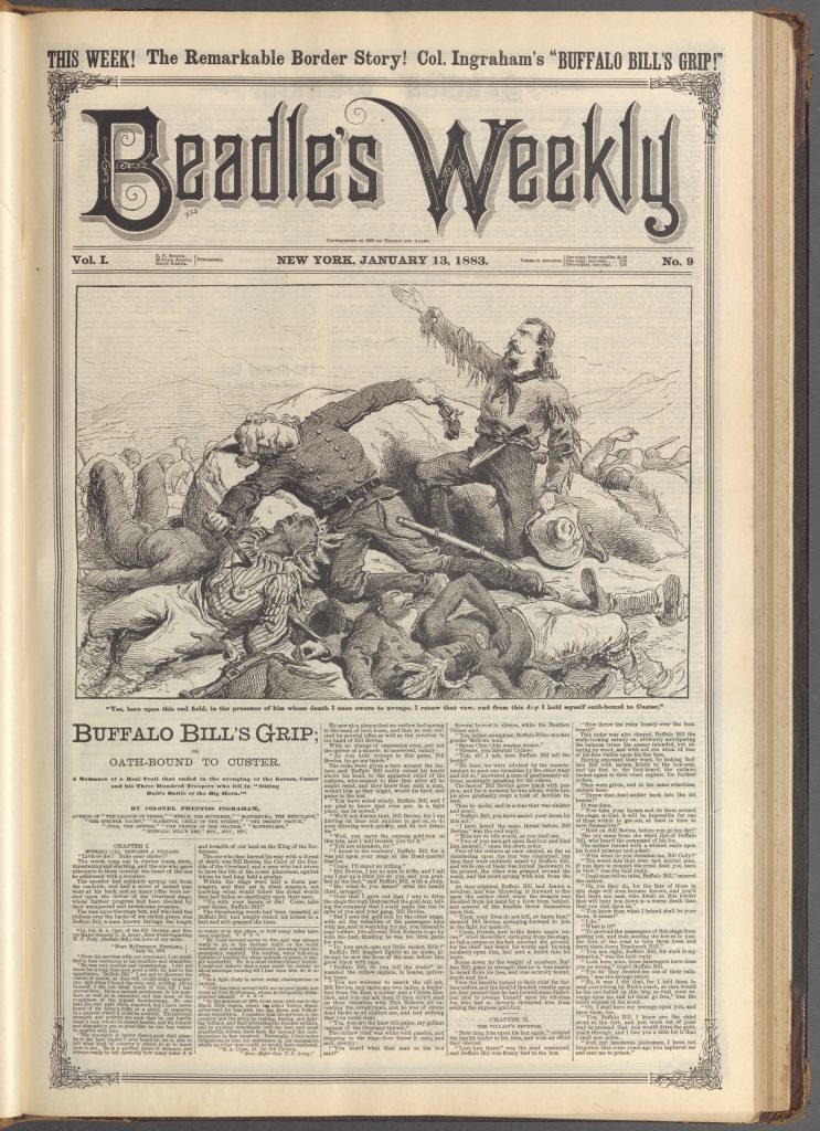 Some of the heroes of these tales like Buffalo Bill Cody even took to chronicling their own lives, under their own names or through a ghostwriter. Prentiss Ingraham, who wrote many of the "Buffalo Bill" stories for the Beadles, worked as an agent for Cody's famed Wild West shows.