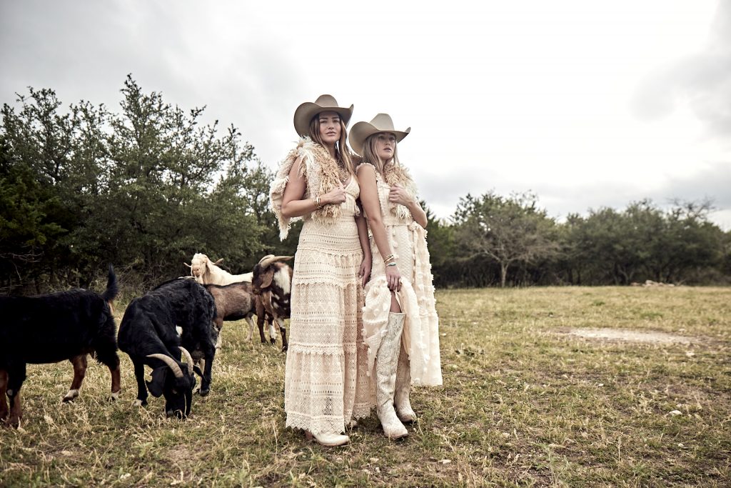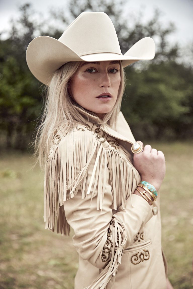[1] [Left] American Hat Co. 100X Natural felt hat ($775.95), shop.besthatstore.com; Cowgirl and Lace Multi-Strand Necklace ($1,200), jennylaurenjewelry.com; Sedona Crochet Maxi Dress in Ivory ($288), tuckerbrown1986.com; Elliatt Josephine jacket ($258), tuckerbrown1986.com; Priscilla in Glitz Creme boot ($895), lucchese.com | [Right] American Hat Co. 200X Silver Belly felt hat ($1,075.95), shop.besthatstore.com; Multi-Turquoise Inlay Cuff ($795), ferrisjewelry.com; Sterling Silver 24K Gold Fresh Water Pearl and Diamond ring ($4,910), readsjewelers.com; Love For All Woven Midi Dress ($64), flyingtomato.com; White glitter overlay tall top boots ($298), corralboots.com.