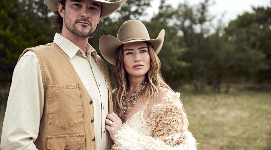 [On him] American Hat Co. 100X Natural felt hat ($775.95), shop.besthatstore.com; Taylor Stitch button-up shirt (C&I's own); Schaefer Outfitter's vest (C&I's own) | [On her] American Hat Co. 100X Natural felt hat ($775.95), shop.besthatstore.com; Cowgirl and Lace Multi-Strand Necklace ($1,200), jennylaurenjewelry.com; Sedona Crochet Maxi Dress in Ivory ($288), tuckerbrown1986.com; Elliatt Josephine jacket ($258), tuckerbrown1986.com.
