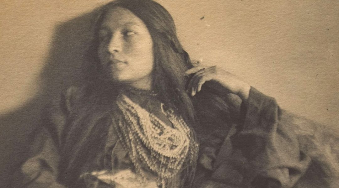 She had begun to play the violin at Carlisle and showed a true talent for the instrument. On her spring break in 1899, she traveled to New York City to further her studies. It was around this time that she met Gertrude Kasebier, the most noted female photographer of her era. The two became fast friends, and Kasebier and her colleague, Joseph Keiley—who was captivated by the young writer’s delicate beauty—took a series of romantically posed photographs, featuring the young author in both modern and tribal dress. The prints sold in 1900 for an impressive $1,000 apiece, a value of over $33,000 today.