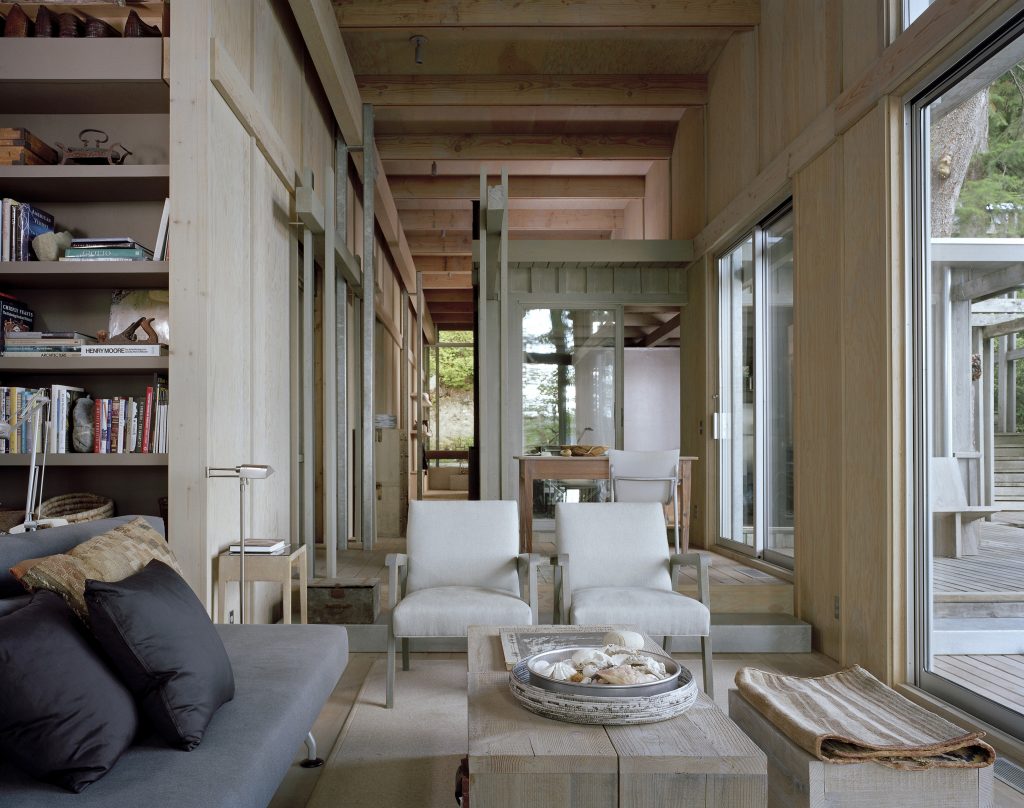 Today, Olson maintains that the cabin is a chronicle of the development of residential architecture in the Northwest, from simple post-and-bean construction to airy geometries that expand to capture light and space. "Each iteration of the cabin marks a point of evolution, not only in my personal life, but in my architectural career. My frame of reference continued to expand and refine throughout every addition; moments from Longbranch directly influenced my work for clients, and lessons from those projects informed how I approached designing for myself."