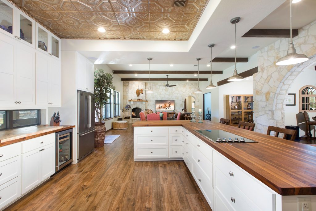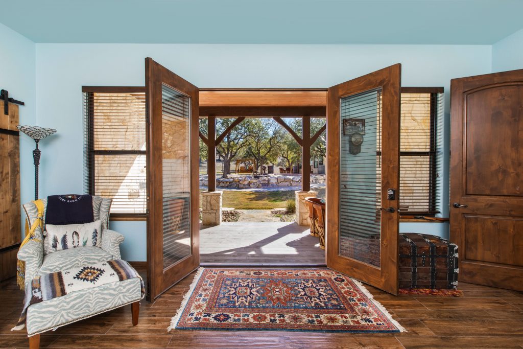 And it’s allergy-mitigated: Sneezers will whoop because the 600 acres of pristine land have been fully cleared of cedar trees. Inside the circa-2017, 4,541-square-foot residence, everyone will applaud the 12-foot-high ceilings, wood beams, stone fireplaces, and dramatic arched doorways.