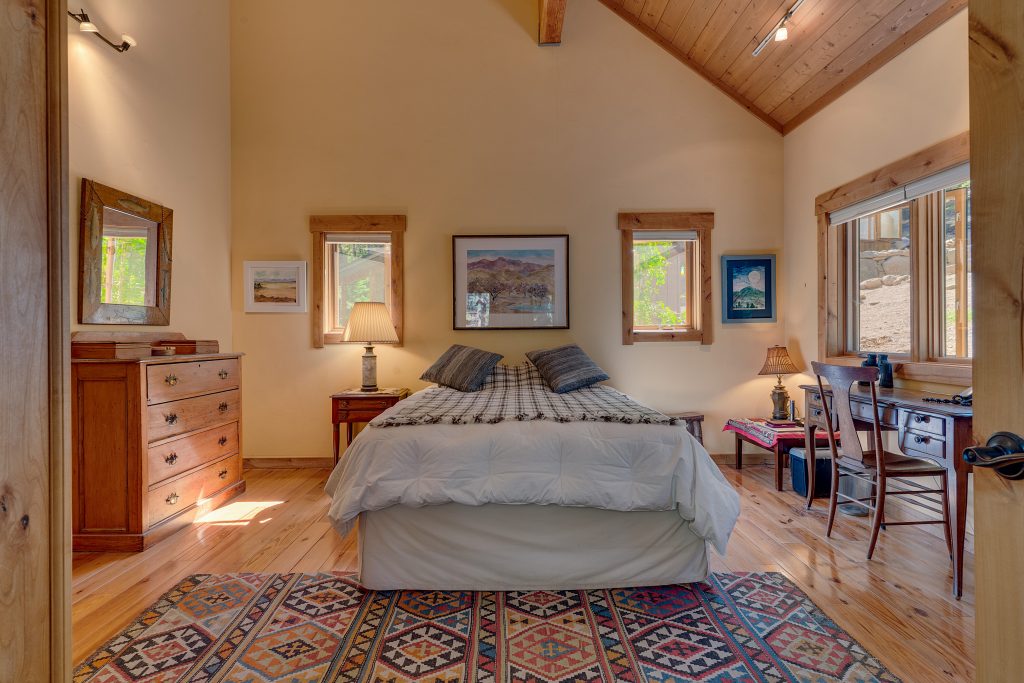 An even bigger bonus of that bonus room is the fact that it opens to a large patio that overlooks a serene meadow that leads down to Juniper Creek — a view that will certainly inspire any artist.