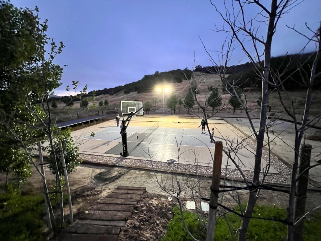 A regulation pickleball court, Bocce ball, horseshoes and half-court basketball offer a perfect setting for tournaments and other group activities. The lighted courts allow groups to extend the fun into the evening hours.