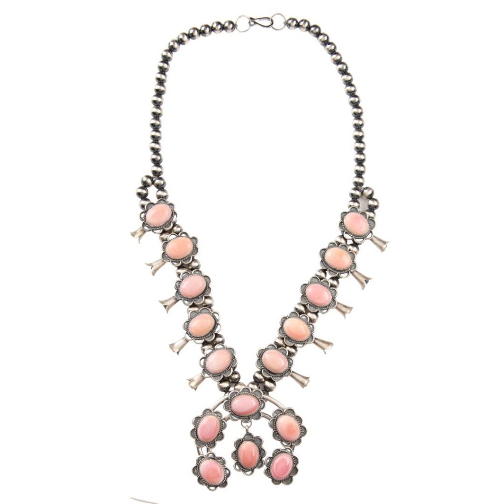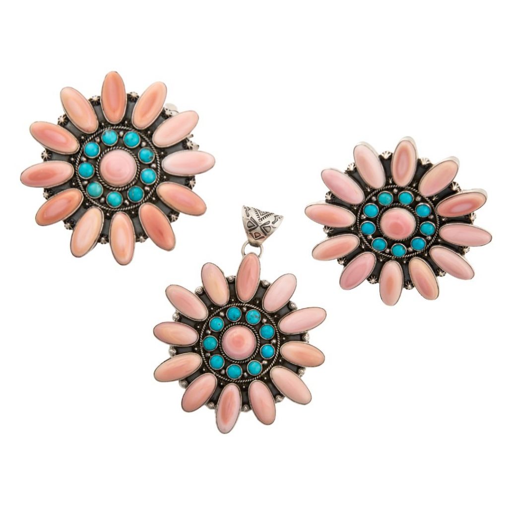 [1] Barbie Girl squash ($3,600), hippiecowgirlcouture.com [2] Adjustable "Cotton Candy" and Sleeping Beauty turquoise cluster ring ($900), Adjustable "Cotton Candy" and Sleeping Beauty turquoise cluster pendant ($500), hippiecowgirlcouture.com [3] Melvin Francis (Navajo) Vintage Pink Opal Ranger belt buckle ($825), doubledranch.com [4] "Cotton Candy" cuff (contact for pricing), Adjustable "Cotton Candy" cluster ring #1 ($429), Adjustable "Cotton Candy" cluster ring #3 ($429), hippiecowgirlcouture.com [5] The Daisy Opal lariat ($2,200), hippiecowgirlcouture.com [6] Pink Pearl cuff ($895), samsvillegallery.com.