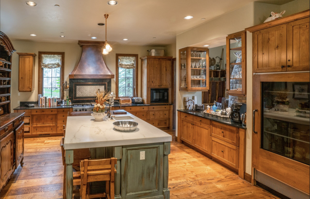 When you’re living this large, you need a big-time house to rest your weary head. That’s where Wild Rose Ranch comes in. Located just 3 miles from Aspen, this exceptional five-bedroom, four-and-a-half-bathroom home exemplifies the best of Colorado architecture thanks to large structural pine logs and an abundance of moss rock. Here, you’ll find everything you’ll ever need for an extended stay: large living areas with floor-to-ceiling windows with mountain views; a chef ’s kitchen with copper accents and marble mined from Marble, Colorado; a meditation room tower; a bunkroom that can sleep seven; and a custom-built coke oven, inspired by the mining eras of the valley, which is now used as a wine room.