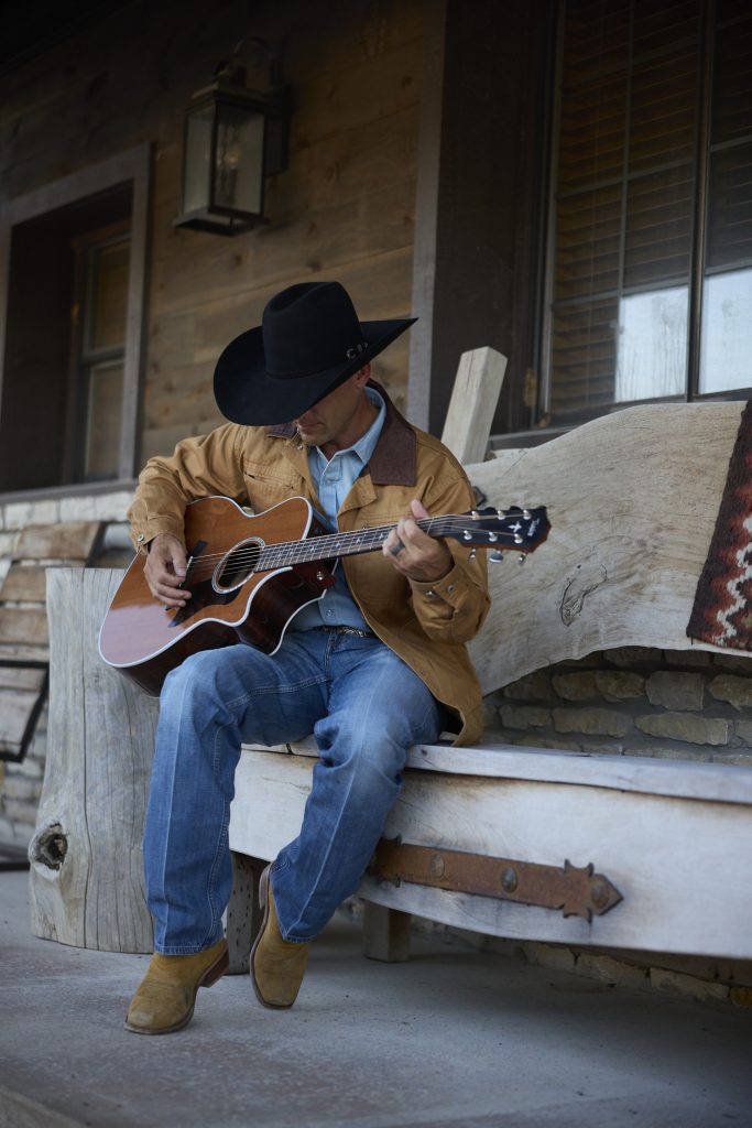 100X black felt hat, resistol.com; The Marfa denim shirt, ponchooutdoors.com; Journey jacket, resistol.com; Spearville boots, hyerboots.com; Belt, buckle, and Wrangler jeans (Colby’s own).