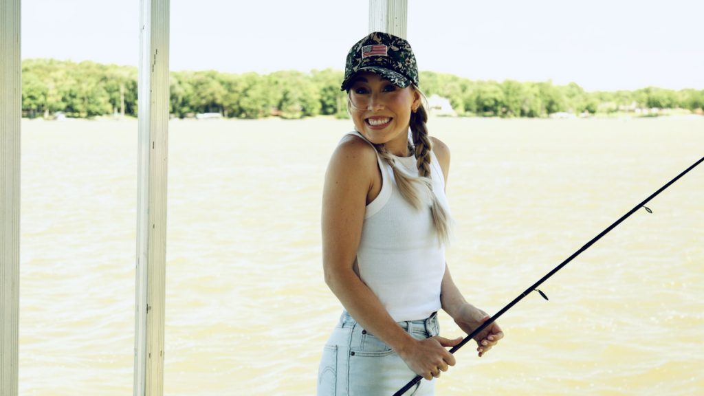 Tae: I started fishing when I was in diapers. I have photos of me at my nanny and pawpaw’s pond in Oklahoma. They had this beautiful property and a couple ponds where we learned to fish. I’m in my diaper in this big t-shirt and my dad’s trying to hand me the fishing pole. When I think of fishing, I think of my dad. That’s what we did growing up, and we still go fishing together. We’ve participated in tournaments and it’s so much fun, and I think it fosters such a still and peaceful environment to bond with people you love.