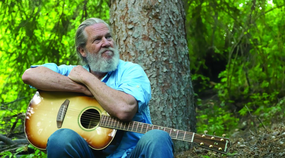 Jeff Bridges, a longtime Montana resident (pictured here with the Breedlove guitar), is one of the celebrities who have taken a keen interest in the endangered Black Ram forest and the special guitars made from a tree felled in it (PHOTOGRAPHY: Courtesy of R. A. Beattie).