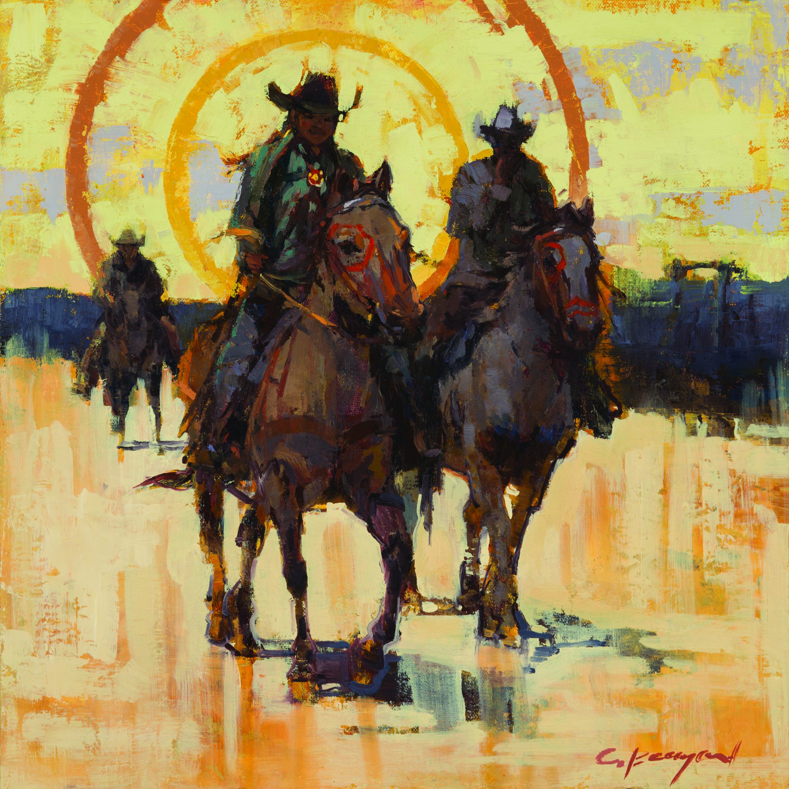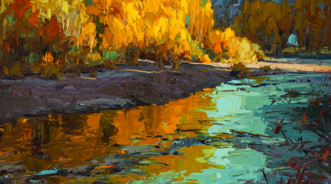 From her home in the Rockies, Beauregard ventures out to capture the authentic spirit of the American West with her paintbrush. Though she’s traveled all over the world, she continues to find inspiration right in her backyard — in golden-yellow aspen leaves dancing on the breeze, in the Yampa River winding its way through the valley, in cattle grazing against a backdrop of snowcapped peaks.