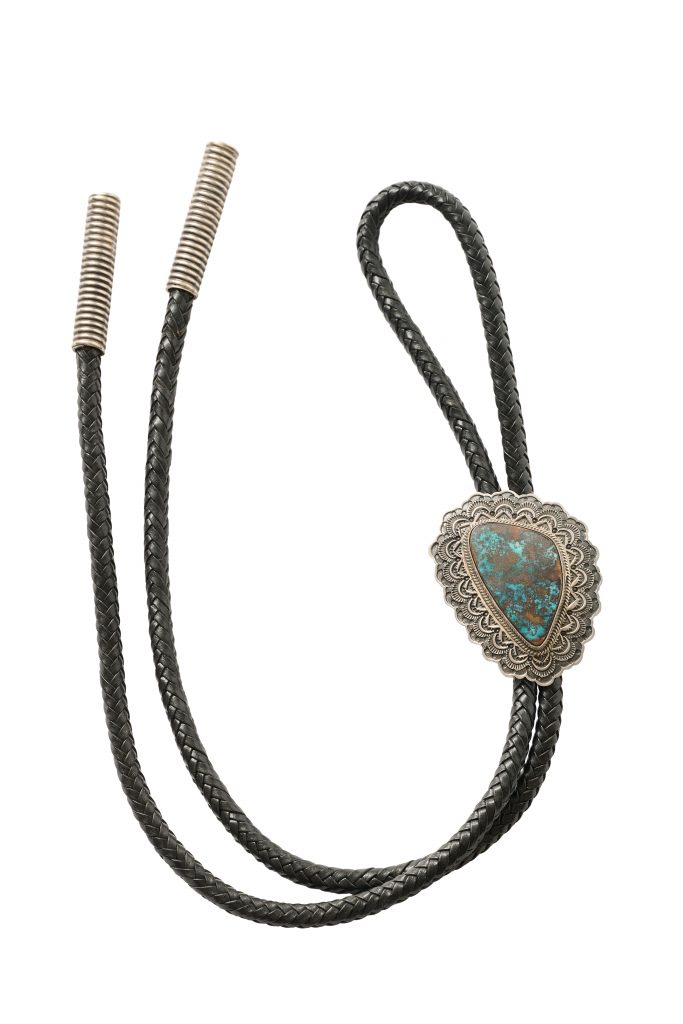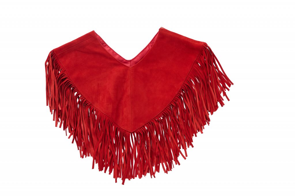 [1] Red Italian suede fringe shawl, shopthreesons.com; [2] Kingman turquoise bolo, caseycurtisdesigns.com; [3] Maverick custom by Fringe exclusive Stockyards toile scarf, maverickwesternwear.com; [4] The Crown hair comb, stellathomas.com; [5] Rococo silk scarf, athomewithray.com; [6] Sunshine Reeves (Navajo) bolo tie, danavoorhees.com; [7] The Modoc buckle set, vogtsilversmiths.com; [8] White Moonstone and leather fringe bolo, leathersage.com.