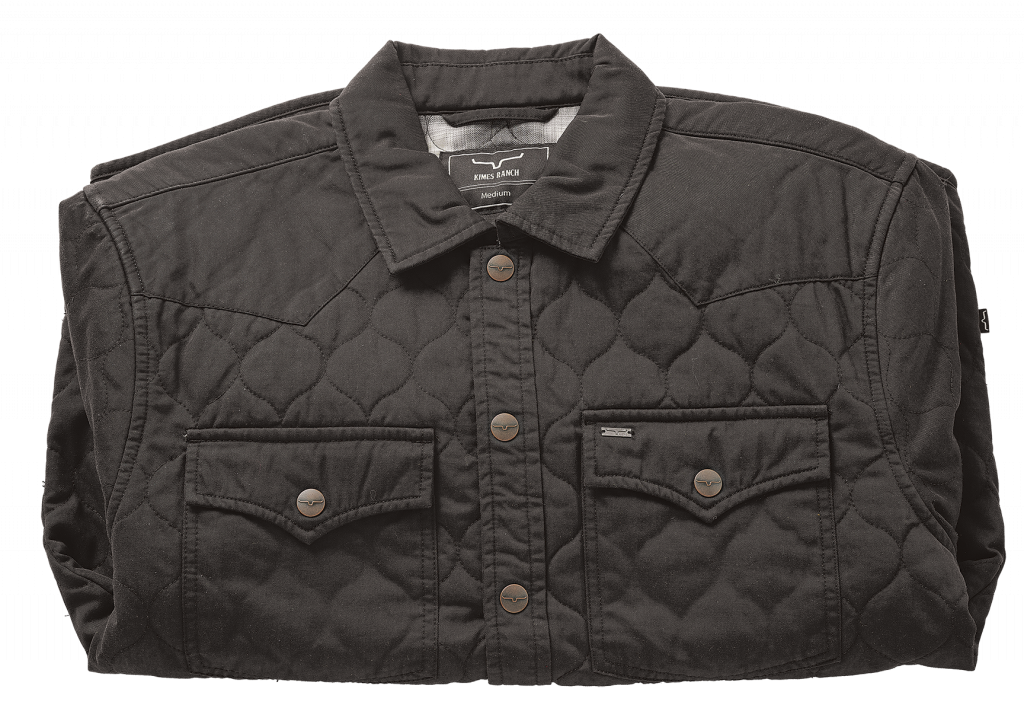 [1] Bryce suede jacket, overland.com; [2] Sheridan Western pearl snap, lovleiranch.com; [3] Black quilted jacket, kimesranch.com; [4] Swing on Em shirt, vaqueraadankdesignco.com.