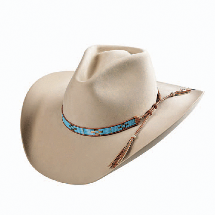LEAD PHOTO: [Clockwise from top] Stellar felt hat in Buckskin, baileyhats.com; Leather small batch cologne, truwestern.com; RimRock silver and turquoise cross pendant, hyosilver.com; Stan in whiskey silk neckerchief, athomewithray.com; Maverick Custom by Vogt Longhorn trophy buckle, maverickwesternwear.com; 13-inch Reserve exotic boot, twistedx.com.