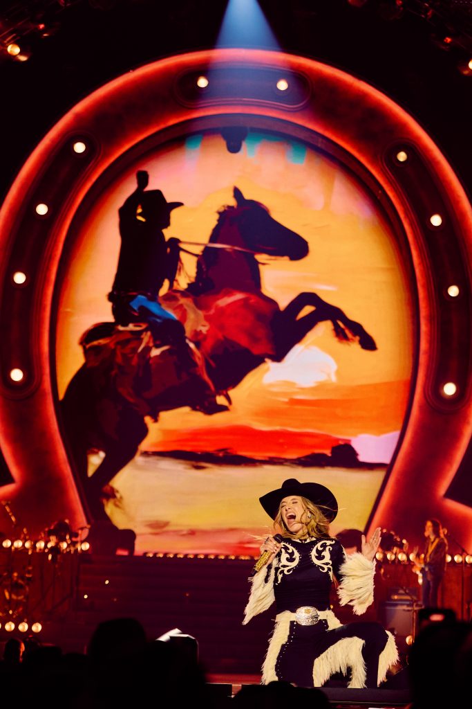 But Wilson balanced all of that spectacle with some intentionally quiet moments. One special standout was a medley of classic country songs from Vince Gill, Dwight Yoakam, and the Nitty Gritty Dirt Band that launched her into her own “Country’s Cool Again.”