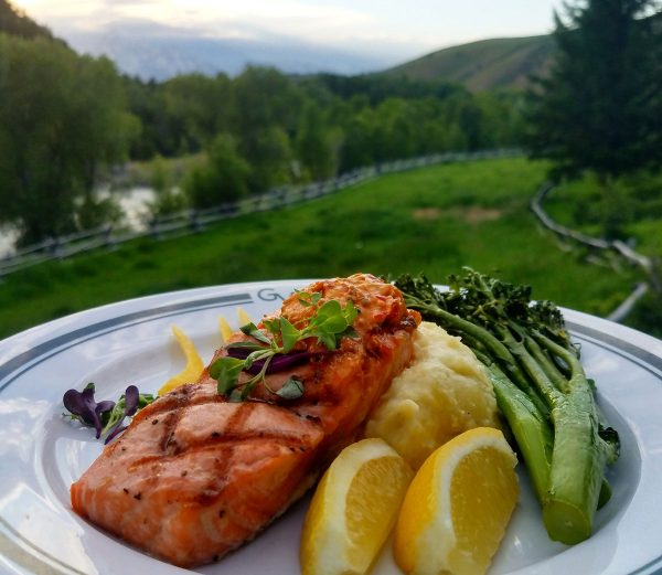Recipe: Gros Ventre River Ranch’s Grilled Salmon With Garlic Mashed Potatoes and Broccolini